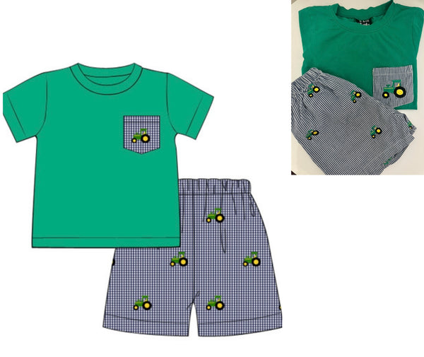 Tractor Applique Shorts Set